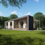 Elegant Modern Design: Built using wooden frame construction with a low-pitched roof, the house features a distinctive and refined silhouette.